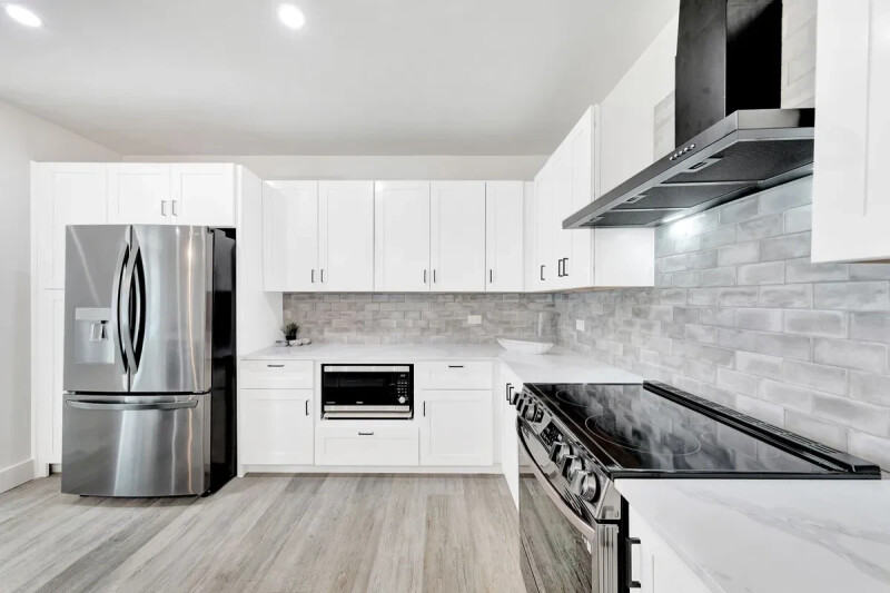 The heart of this home lies in its thoughtfully designed kitchen, a paradise for cooking enthusiasts. The elegant white shaker cabinets with soft-close doors exude timeless charm while providing convenient storage. A built-in spice rack adds a touch of functionality to your culinary creations, ensuring that your favorite ingredients are always at arm's reach. The built-in microwave offers modern convenience without compromising on style.